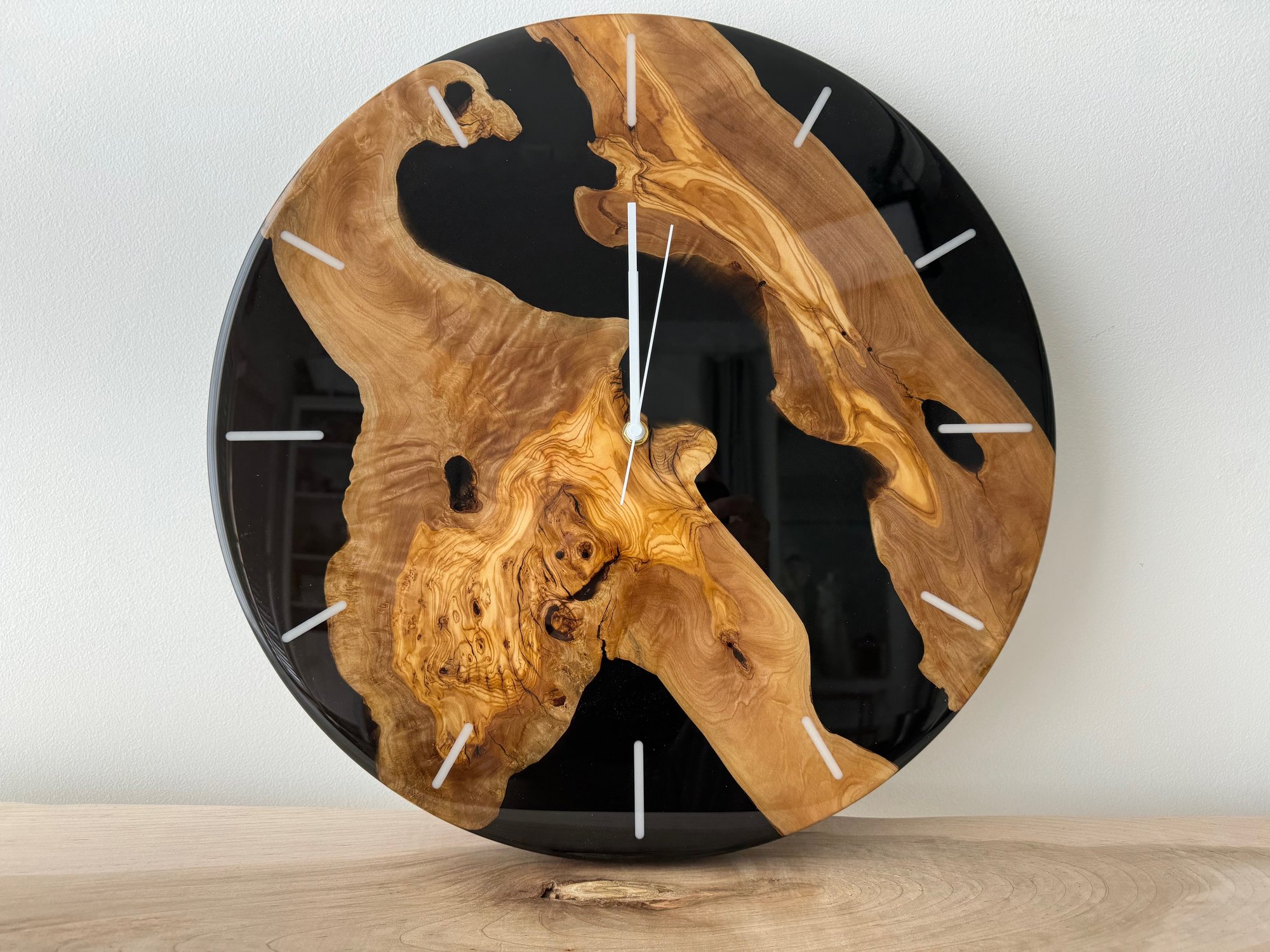 Beautiful 18" Olive wood and resin clock